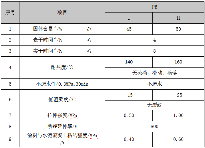 參考用量: 防水膜干膜厚度為1mm時,其用量為1.2kg/m2。