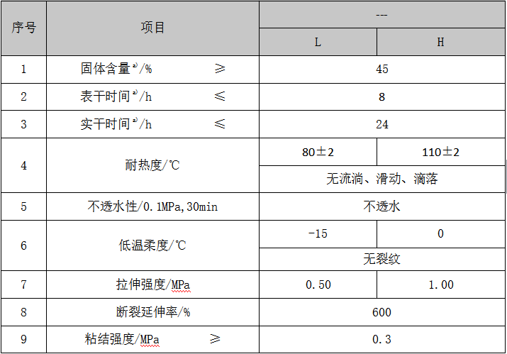 2、延伸率、耐老化性能優(yōu)良,對基層開裂適應(yīng)性強,具有優(yōu)良的抗凍性能和低溫柔性;