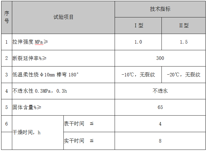 4、涂膜既具有良好的耐水性和抗拉性能,又具有高彈性及極好的低溫柔性;