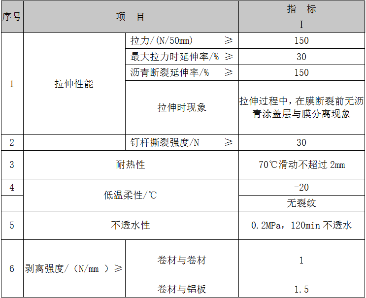 2、獨特“自愈”功能。能自行愈合較小的穿刺破損,對釘穿透或細微裂紋具有愈合能力,能有效保證卷材防水的整體性。