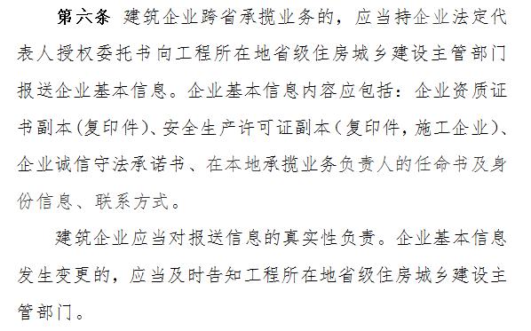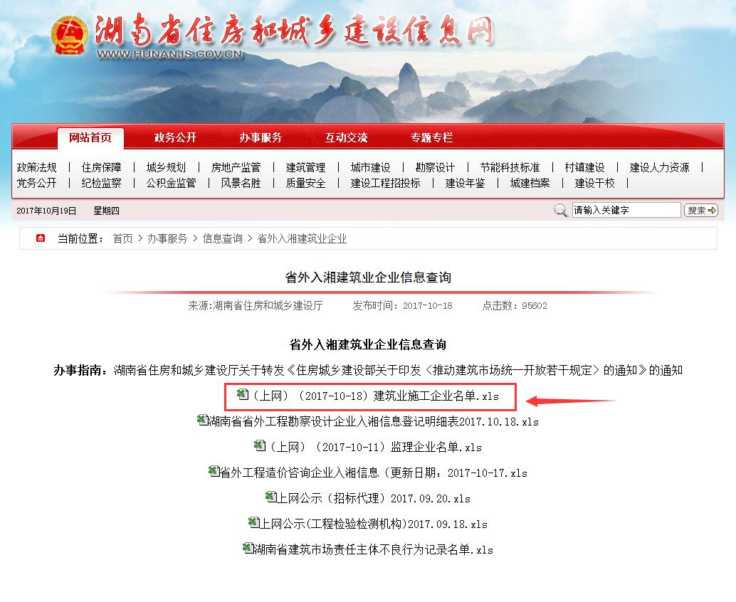 而根據(jù) 《湖南省住房和城鄉(xiāng)建設(shè)廳關(guān)于轉(zhuǎn)發(fā)“住房城鄉(xiāng)建設(shè)部關(guān)于印發(fā)〈推動建筑市場統(tǒng)一開放若干規(guī)定〉的通知”的通知 湘建建〔2015〕190號》的規(guī)定,入湘承攬業(yè)務(wù)的省外建筑企業(yè)(含勘察、設(shè)計、施工、監(jiān)理、招標代理、造價咨詢、質(zhì)量檢測單位等),應(yīng)當(dāng)持企業(yè)法定代表人授權(quán)委托書向湖南建設(shè)廳政務(wù)中心報送企業(yè)基本信息及有關(guān)材料。省外建筑企業(yè)在湖南建設(shè)廳發(fā)布其基本信息成功登記備案后,方可在湖南行政區(qū)域內(nèi)承攬業(yè)務(wù)。