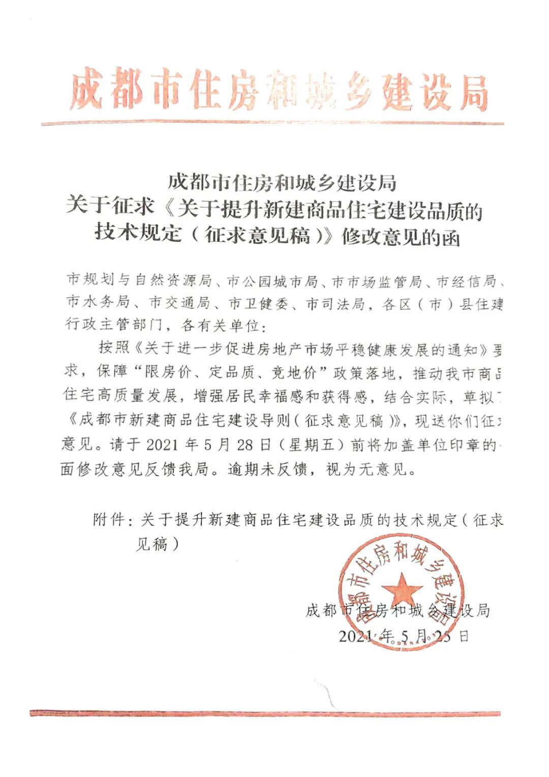 同日,成都市住房和城鄉(xiāng)建設(shè)局發(fā)布《關(guān)于提升新建商品住宅建設(shè)品質(zhì)的技術(shù)規(guī)定《征求意見(jiàn)稿》》的最后征求修改意見(jiàn)。意見(jiàn)明確要求:禁用熱熔型SBS防水卷材、溶劑型建筑防水涂料,防水質(zhì)保期不低于10年。