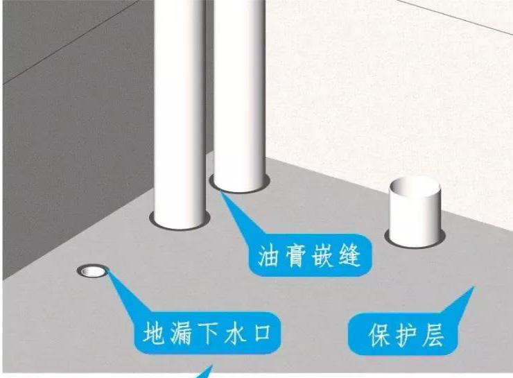 如果是有各種管道接口部位,防水最好是做3-5遍,能強(qiáng)化防水作用,能夠有效防止局部漏水。