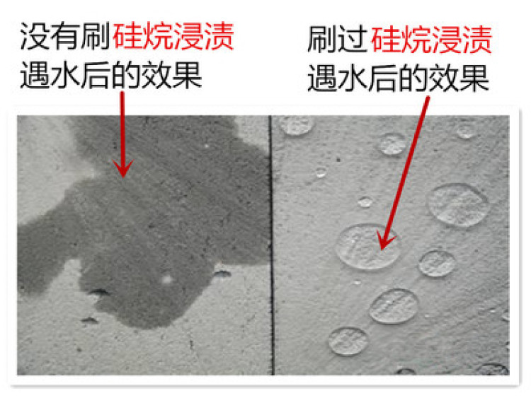 硅烷這種材料——能夠深層滲入混凝土結(jié)構(gòu)中,并與其發(fā)生反應(yīng)形成疏水層,賦予混凝土結(jié)構(gòu)長期的憎水性,使混凝土結(jié)構(gòu)表面如同荷葉一般,水在其上可自由滾動(dòng)。